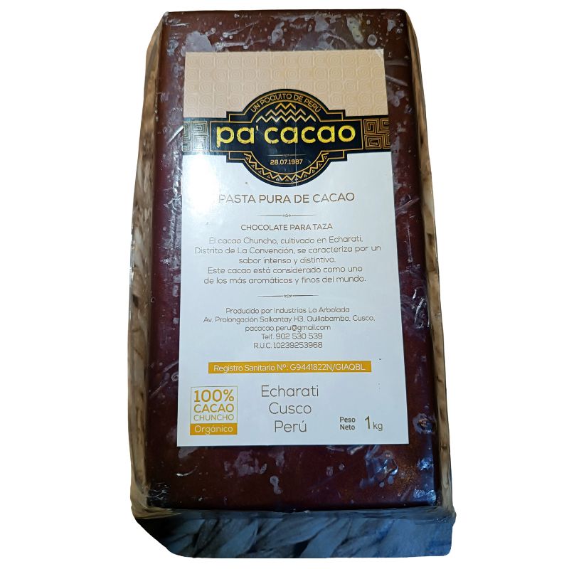 Descubre el alma del cacao en su estado más puro. Nuestra pasta de cacao 100% Chuncho de 1 kg. es elaborada directamente desde las fértiles tierras del Valle de La Convención – Echarati, cuna de uno de los cacaos más finos y antiguos del mundo.